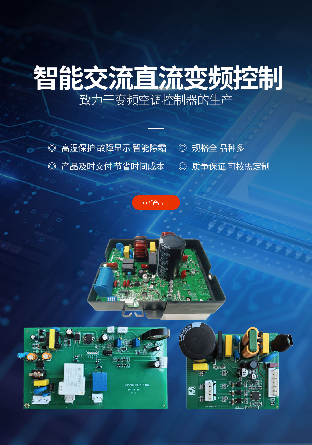 公司目前有多種專利,并具備生產(chǎn)及工藝技術(shù)。年產(chǎn)家電控制器一百萬套,產(chǎn)品廣泛用于空調(diào)、中央空調(diào)、電熱水器、冰箱、洗衣機(jī)、水暖毯、健身器材智能控制器等領(lǐng)域。目前是國內(nèi)變頻通用控制系統(tǒng)品牌。